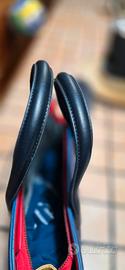 Splendida borsa a mano firmata Paul's Boutique London, originale e in condizioni eccellenti. Il design è elegante e grintoso: corpo principale in blu navy con trama saffiano, fianchi color ocra/senape e interni a contrasto rosso acceso. Perfetta sia per l'ufficio che per il tempo libero grazie alla sua struttura rigida e capiente. Dettagli: Doppi manici neri, chiusura con zip, piedini protettivi in metallo sul fondo. Interno: Foderato con logo all-over e tasche portaoggetti. Stato: Usata pochissimo, non presenta segni di usura evidenti (come visibile in foto). ⚠️ REGOLE PER LA VENDITA (Leggere attentamente): NO VIDEO: Le foto caricate sono numerose, dettagliate e fedeli allo stato dell'oggetto. Non invio ulteriori video o foto aggiuntive "indossate". SOLO COMUNICAZIONI IN-APP: Per sicurezza di entrambe le parti, non fornisco il mio numero di telefono né accetto contatti su WhatsApp o via email. Tutte le trattative devono avvenire esclusivamente tramite la chat ufficiale della piattaforma. PAGAMENTI E SPEDIZIONI: Gestiti tramite il sistema ufficiale della piattaforma per la massima tutela.
