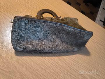 BORBONESE Borsa a bauletto in pelle di tapiro con dettagli in pelle marrone e metallo dorato. Cm 38x22x15. Altezza con manici: cm 10. Internamente tasca molto capiente,chiusa con cerniera di 21cm. Entrambe le cerniere sono perfettamente funzionanti. Reca marchi ed etichetta Borbonese Made in Italy e codice di riferimento prodotto.