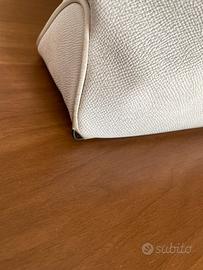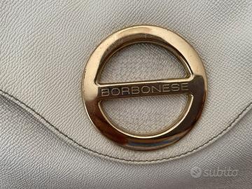 Vendo Borbonese Borsa. Misure: altezza cm. 25/ larghezza cm. 30. Difetti: un angolo consumato, gancio cerniera sotto la piegatura quindi non si vede, non più bella bianca. ( vedi ultime due foto)