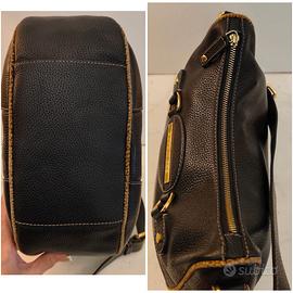 Stupenda borsa a spalla completamente in pelle martellata nera con rifiniture in camoscio TAPIRO beige