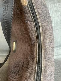 Borsa borbonese classico occhio di pernice marrone con fettuccia nera logata, le foto sono senza carta all’interno per dire che la borsa è ben strutturata non floscia.