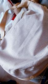Luna bag Borbonese, originale, a tracolla, misura 35x38 cm. Colore panna. Come nuova, no difetti. 1 tasca esterna con cerniera; una tasca interna con cerniera e 2 tasche interne aperte. Dotata di sacca protettiva in panno con logo Borbonese. Prezzo in negozio: euro 255. Si vende solo in zona Trento.