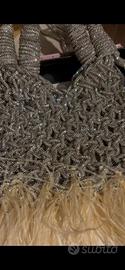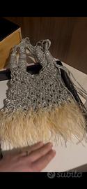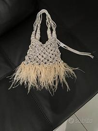 Borsa interamente fatta a mano argeno con cordino Piume di struzzo