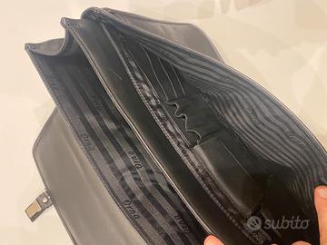 borsa mai usata, modello professionale 24 h. in pelle nera. tre scomparti interni e cinghia a tracolla. supporti per l’appoggio a terra.