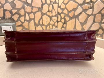 24 ore in pelle marca Adpel maestri pellettari in condizioni molto buone sia esteticamente che funzionali. La 24 ore può presentare lievi segni non profondi ma solo superficiali e poco visibili, essendo usata. All’interno ci sono tre tasche grandi per riporre libri, quaderni, documenti +1 cerniera lunga 25 cm per riporre altri documenti altri oggetti +4 tasche cilindriche per riporre quattro penne, +1 altra tasca senza cerniera lunga 18 cm. Da 24 ore, anche se non si vede in foto è dotata di una chiave per la chiusura della serratura. È presente un manico con attacchi in ottone molto resistente. La larghezza della 24 ore di 40 cm per un’altezza di circa 30 cm per una profondità massima quando è piena di 13 cm. Dopo l’eventuale acquisto verrà lucidata per eliminare quei piccoli difetti superficiali dovuti all’uso.
