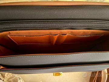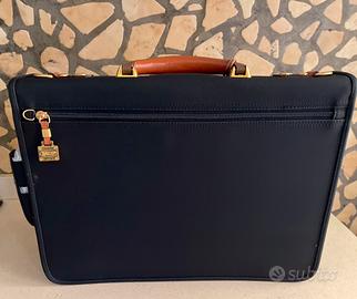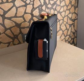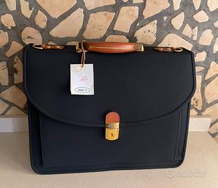 Borsa 24 ore nera Brics nuova con cartellino, manico solido in pelle parti metalliche in ottone lucido, chiave per chiudere la serratura, tracolla per portarla sulla spalla larghezza 40 2 cm profondità 31 cm dotata di cerniera posteriore ampia per riporre documenti +1 altra tasca frontale che permette di inserire documenti fino a uno spessore di 5 cm compartimento interno in pelle che permette di inserire i documenti fino a 8 cm +2 porta penna +1 altra cerniera interna che permetterà ad inserire altri documenti fino a uno spessore di 4 cm. La 24 ore è nuova senza un minimo difetto. Esternamente il colore è nero più nero di quello che si vede in foto e all’interno è fatta di cuoio pelle. La profondità misurata al centro della borsa è di circa 14 cm. il peso è di 2,100 kg grammi. Nuova, mai usata e molto solida.