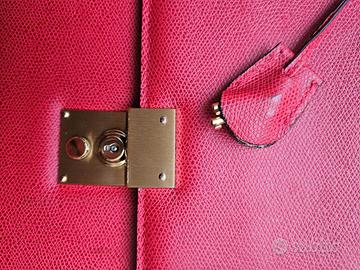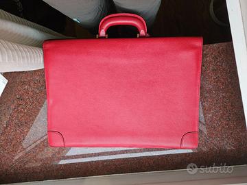 Tradizionale e di classe, in pellame toscano di colore rosso. La chiusura con serratura a scatto in finiture lucide, chiave in porta chiave in pelle. L’ Interno a due scomparti è interamente foderato in materiale resistente e adatto a far respirare il pellame. Ha anche una tasca interna orizzontale con cerniera e una serie di porta oggetti e penne in pelle rossa. All'interno troverete la certificazione Made in Italy che garantisce la provenienza del prodotto ed il nome del produttore stampati in oro. Struttura rigida per salvaguardare al meglio documenti e apparecchio elettronici all'interno. NON dispone di tracolla. Fornito con sua custodia in tessuto morbido. Misure: 30 cm altezza, 42 cm larghezza, 8 cm profondità