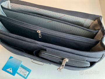 Vendesi Borsa Sansonite 24 ore portadocumenti in tessuto blu molto capiente con certificato di originalita’ in ottime condizioni multitasca con trousse per penne ecc. e con tracolla e chiavina indistruttibile caratteristica di questo marchio
