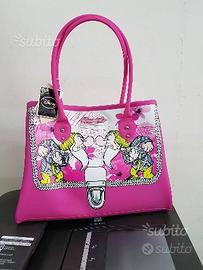 Borsa con manici in silicone colore fucsia, chiusura con bottone, dimensioni cm 35x30x18