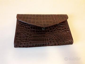 Borsa a busta vintage, color marrone in similpelle di coccodrillo