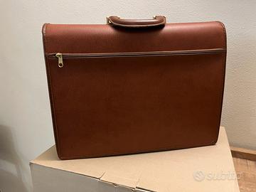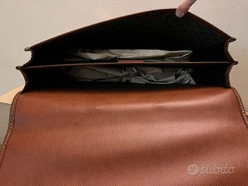 Borsa porta documenti in pelle marrone Nuova senza cartellino con scatola