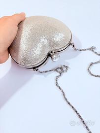 Borsa a forma di cuore, con catenina, di colore argentato