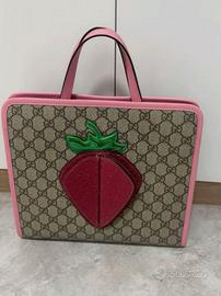 Borsa da donna Gucci con stampa a forma di fragola e bordi rosa Dimensioni: 29 cm * 25 cm * 11 cm