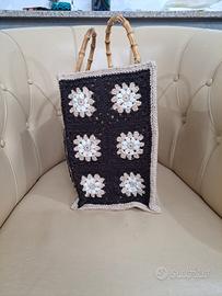 borsa a mana ampia fatta ad uncinetto foderata..nuova con cartellino