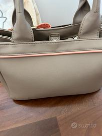 Cute bag a mano con fiocco rosa. Comoda e capiente. Marca Atelier Fixdesign. Un po’ rovinata ai lati e alle maniglie.