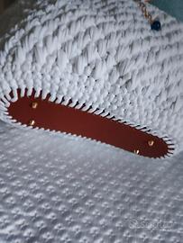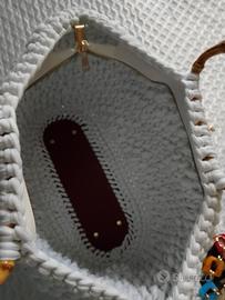 borsa fatta a mano bianca molto capiente con ciondolo e manici in legno