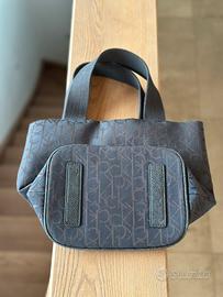Vendo borsa a mano originale Calvin Klein in tessuto jacquard nero con trama monogramma all-over.