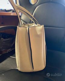 Borsa a mano di Carpisa color bianco/grigio, nuova con ancora il cartellino. Vendo perché non uso borse così grandi. Inserti in oro e cuciture in nero. SENZA TRACOLLA