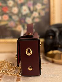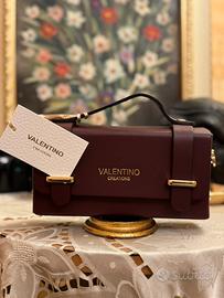 Borsa rigida e compatta dal design rettangolare, realizzata in pelle liscia con finiture dorate. Dotata di manico corto e tracolla a catena removibile. Logo VALENTINO CREATIONS inciso in lettere dorate sul fronte.
