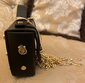 Borsa a mano con tracolla, Valentino Creations Dimensione articolo 18, 10, 16 cm Questa borsa rettangolare rigida e compatta presenta un design strutturato. Realizzata in pelle liscia, è impreziosita da finiture metalliche dorate, tra cui due chiusure frontali decorative, piccoli dettagli laterali e una catena dorata che può essere utilizzata come tracolla. Per una maggiore versatilità, la borsa è dotata di un manico corto per il trasporto a mano. Il logo VALENTINO CREATIONS è elegantemente inciso in lettere dorate sul fronte. 📦 Spedizione: L’articolo verrà spedito in un cartone neutro Confezione regalo 🎁 disponibile Solo su richiesta tramite messaggi Vi aggiungiamo un sacchetto Valentino con scatola bianca e dorata con logo Valentino al costo di 4,99.