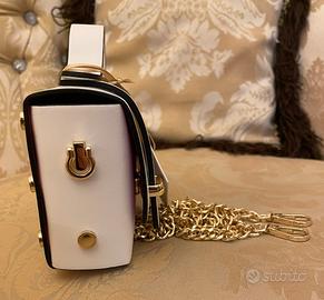 Borsa a mano con tracolla, Valentino Creations Dimensione articolo 18, 10, 16 cm Questa borsa rettangolare rigida e compatta presenta un design strutturato. Realizzata in pelle liscia, è impreziosita da finiture metalliche dorate, tra cui due chiusure frontali decorative, piccoli dettagli laterali e una catena dorata che può essere utilizzata come tracolla. Per una maggiore versatilità, la borsa è dotata di un manico corto per il trasporto a mano. Il logo VALENTINO CREATIONS è elegantemente inciso in lettere dorate sul fronte. 📦 Spedizione: L’articolo verrà spedito in un cartone neutro Confezione regalo 🎁 disponibile Solo su richiesta tramite messaggi Vi aggiungiamo un sacchetto Valentino con scatola bianca e dorata con logo Valentino al costo di 4,99.