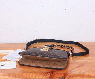 Questa borsa trae ispirazione dai modelli classici degli archivi del brand, combinando la tela Monogram e Monogram Reverse con finiture in pelle per un look casual ma sofisticato. La chiusura a S e il manico a catena intrecciata aggiungono dettagli di design, consentendo di indossarla in modo versatile, come borsa a mano o a spalla.
