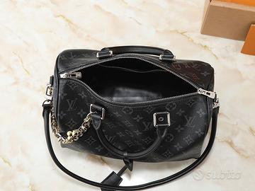 Questa borsa Speedy Soft 30, della collezione LV Ski, reinterpreta il design classico con la tela Monogram Eclipse. I dettagli di lusso includono una doppia catena, un portachiavi in pelle stropicciata e il caratteristico lucchetto. Ha le dimensioni perfette per contenere un tablet e altri oggetti essenziali di uso quotidiano. Dimensioni: 30 x 21 x 17 cm (L x A x P)