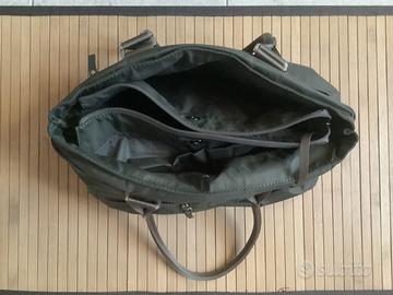 All’interno vano principale con tasca con cerniera, due taschine e gancio per chiavi/portafoglio e due ampi scomparti laterali chiudibili con bottoni a pressione.