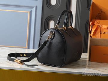 Questa borsa a mano Speedy Soft 30 è realizzata in morbida pelle di vitello in una versione sobria, una compagna di viaggio minimalista. L'iconico lucchetto LV ha una lucentezza vintage e la tracolla staccabile consente molteplici opzioni di trasporto. Le sue dimensioni perfette contengono facilmente gli oggetti essenziali di tutti i giorni e la tasca interna a bustina aggiunge funzionalità. Dimensioni: 30 x 21 x 17 (cm) (Lunghezza x Altezza x Larghezza)