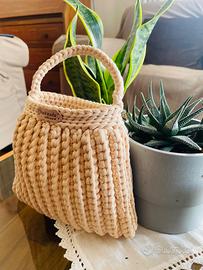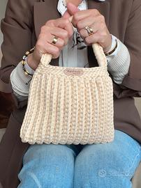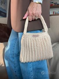 Borsa a mano. Fatta a mano in fettuccia di cotone. Dimensioni circa 20x15cm . Nuova senza cartellino. Mai usata.