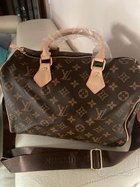 Borsa a mano e tracolla , marrone e beige interno rosso, nuova mai usata