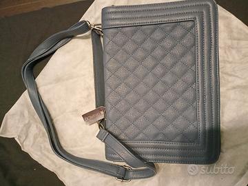 Borsa a tracolla e a mano Crazy Frog. Colore Blu scuro, ecopelle. Nuova, ancora con cartellino. Dimensioni: lunghezza 30 cm, altezza 22 cm, profondità (chiusa 4 cm) aperta (10 cm sul fondo, 5 cm in cima)