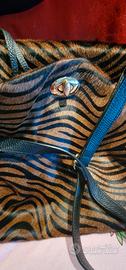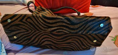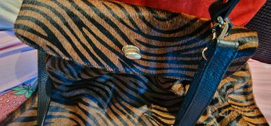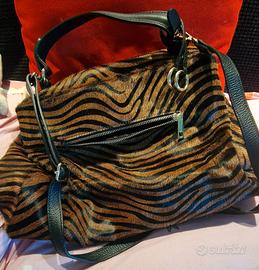 Vendo splendida borsa in vera pelle artigianale, interamente prodotta in Italia. Il corpo della borsa è caratterizzato da un raffinato effetto cavallino con stampa zebrata nei toni del marrone e nero, ideale per chi cerca un accessorio di carattere e di classe. Caratteristiche principali: Materiale: Vera pelle di alta qualità (certificata dall'etichetta interna). Design: Pattern animalier (zebra) con dettagli e manici in pelle martellata nera. Versatilità: Può essere portata a mano o a spalla grazie alla pratica tracolla regolabile e rimovibile. Dettagli: Chiusura metallica a girello sul davanti e pratica tasca esterna posteriore con zip per gli oggetti da tenere a portata di mano. Interno: Ampio scomparto foderato con tasca interna di sicurezza dotata di cerniera. Stato: Ottime condizioni, pelle morbida e finiture curate. Piedini metallici sul fondo per evitare l'usura. Una borsa capiente e versatile, perfetta sia per il lavoro che per il tempo libero. Disponibile per spedizione o consegna a mano in zona Livorno Hashtag #borsapelle #verapelle #madeinitaly #borsazebra #animalier #cavallino #borsadonna #accessoridonna #subito #modadonna #handbag