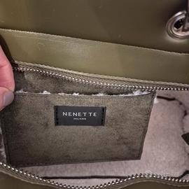 👜 Splendida borsa firmata Nenette Milano realizzata in morbido tessuto scamosciato verde.