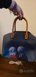 vendo borsa a mano con disegno "gli amanti" con tracolla, come si vede nella foto. ottime condizioni, usata pochissimo.