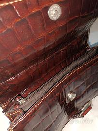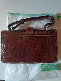 Borsa a mano United Colors of Benetton , poco usata e praticamente nuova, effetto coccodrillo rosso lucido, 22x14x4, con tre scomparti interni di cui uno con cerniera e scomparto a busta esterno. La maniglia si può allungare per farla diventare borsetta a braccio. Doppia chiusura con clip interna e fibbia esterna. Completa di borsina bianca stampata UCB originale.
