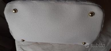 Vendo borsa nuova, mai usata: dalle foto si possono vedere le maniglie ed il fondo bianco senza alcun segno di utilizzo, la cerniera interna ancora avvolta nella carta. Originale. Corredata da custodia in tessuto originale. A richiesta sono disponibile ad inviare altre foto più dettagliate
