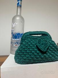borsa a mano realizzata in fettuccia verde con fondo in ecopelle fatto a mano pezzo unico