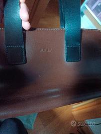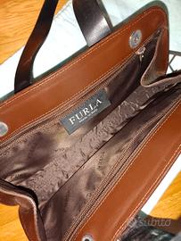 Handbag Furla, marrone con maniglie nere, presenta piccole imperfezioni come da foto. All'interno presenta due tasche con zip.
