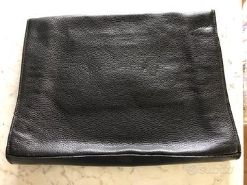 Borsa/cartella SaintJean (senza maniglie) da donna, utilizzabile come porta documenti perché più grande del formato standard A4, pelle nera effetto naturale, elegante, interno foderato, tasca interna con cerniera, usata pochissimo, nessun difetto, condizioni pari al nuovo.