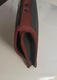 Borsa a mano leggera da convegno - rappresentanza una maniglia flessibile centrata, rivestimento in gomma (impermiabile) a righe colore nero, contorno bordatura colore borgogna, interno in tela, chiusura con sistema a strappo con velcro. Dimensioni ingombro lxhxp:37×30×7 cm.Peso: 580gr.La capienza vano interno interno può contenere circa 3 Cartelline documenti portaprogetti di formato A4/US Letters [34x26cm].Stile elegante,semplice.Borsa Vintage'90 di robusta costruzione, all'interno é cucita una targhetta in pelle con stampinato a caratteri dorati: "Centro di Studi Ciceroniani - Colloquium Tullianum MCMXCI New York 6-10 Maggio 1991".In Ottimo stato,segni da normale usura, come da foto pubblicate. Ideale per appassionati,storici e cultori di studi umanistici riguardanti Il Centro di Studi Ciceroniani fondato nel 1957 con lo scopo di promuovere, favorire e coordinare iniziative riguardanti la vita e l'opera di Marco Tullio Cicerone a livello internazionale per volontà del Senatore della Repubblica Giulio Andreotti.