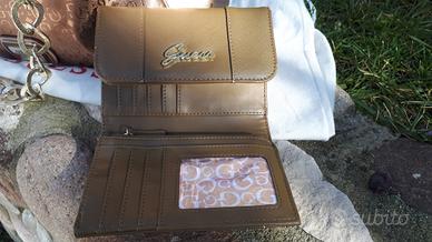 in buone condizioni.Regalo portafogli Guess originale colore verde scuro, leggermente rovinato nel bordo, da sistemare con un po' di smalto.