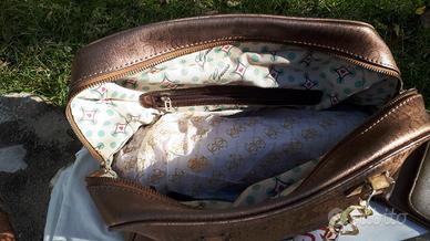 Borsa a mano Guess originale colore bronzo con manici a catena sostituiti xché rovinati, con charms a cuore.
