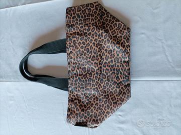 Borsa a mano originale Hervé Chapelier in fantasia maculata, realizzata in 52% PVC e 48% poliamide.