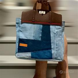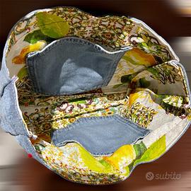 Bellissima borsa in jeans ed eco Pelle realizzata totalmente a mano! Dalle generose misure di 30 × 35 × 12, all’interno, sempre rivestite materiale impermeabile, presenta una doppia tasca porta oggetti! La chiusura è acri Penn acciaio, comoda per l’ufficio o da giorno