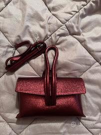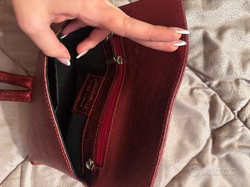 perfette condizioni, mai utilizzata, presenta la sua tracolla all’interno oppure puó essere portata a mano. è stata realizzata in italia ed è 100% vera pelle come scritto sull’etichetta. all’interno è capiente, ma rimane una pochette molto elegante.