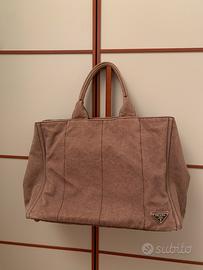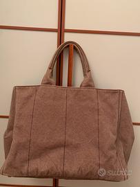 Borsa in tela marrone chiaro molto capiente praticamente nuova. Misure 30x21 cm, aprendo le clip diventa molto più ampia.