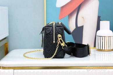 Borsa a mano LOUIS VUITTON PETITE MALLE Classic in pelle martellata con monogramma goffrato, finiture dorate e catena