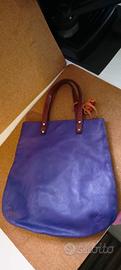 Borsa a mano in pelle, un accessorio versatile e capiente. Materiale cuoio e pelle di pecora . Fatta a mano Misure 23cm x 36 cm( compreso manici )