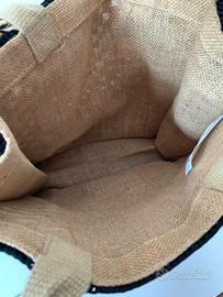 Borsa a mano, base di Yuta, manici in bambù - fiori siciliani 3D.